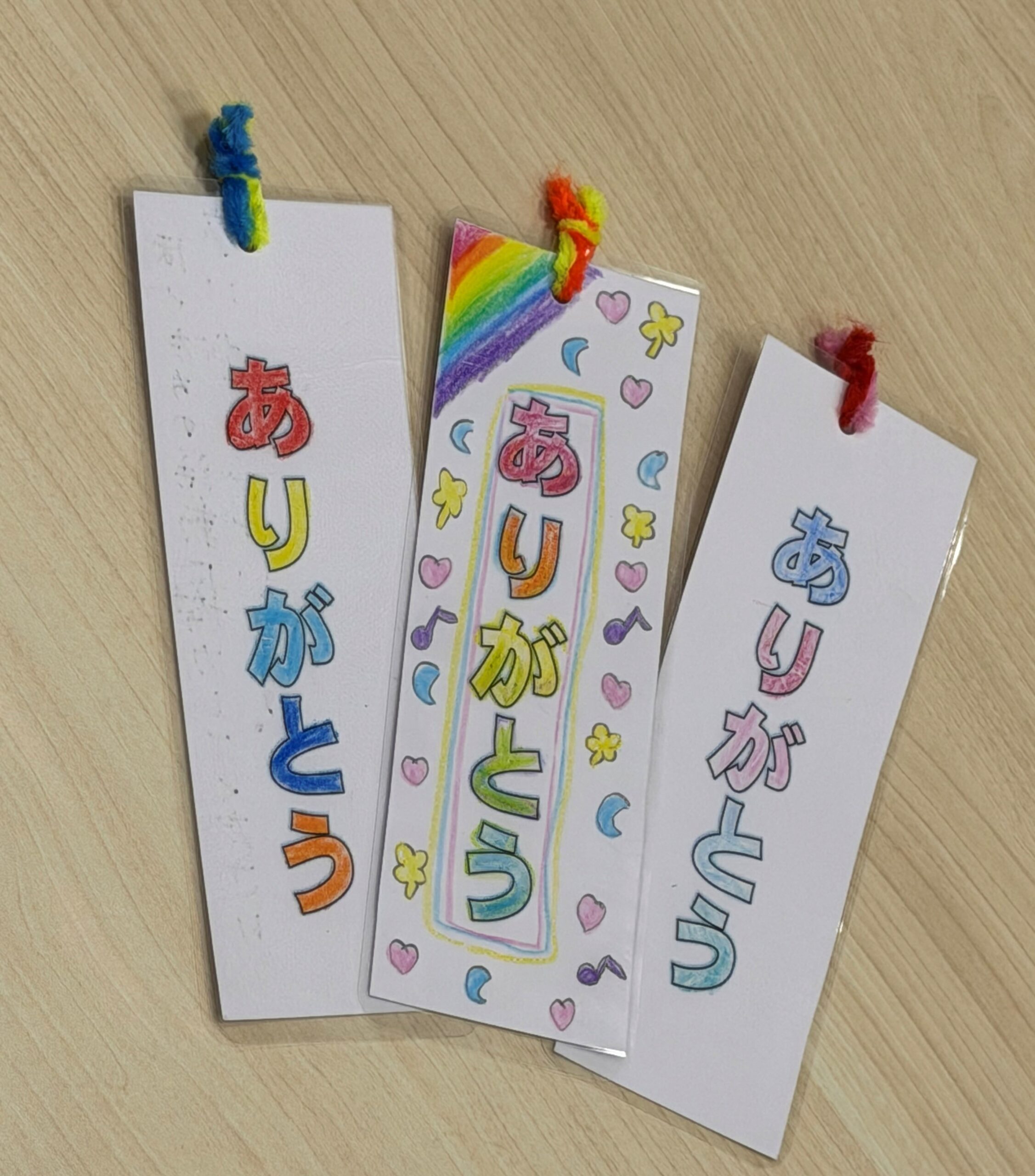 また、講座終了後には児童の皆さんから心温まるお礼のしおりを頂きました。頂いたしおりの写真も掲載させて頂きます。